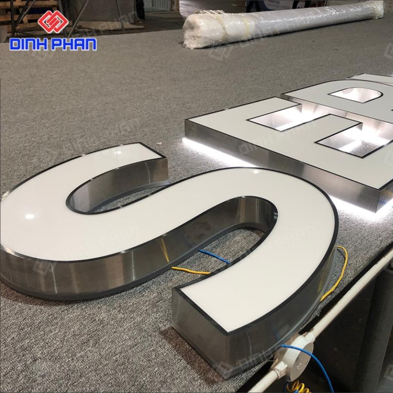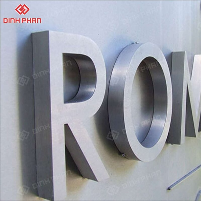 Đây là dạng chữ nổi được gia công từ inox cao cấp, bề mặt xử lý mờ nhằm giảm độ phản xạ ánh sáng, tạo cảm giác tinh tế và sang trọng. Chất liệu inox giúp chữ có khả năng chống oxy hóa, hạn chế gỉ sét và thích hợp sử dụng cả trong nhà lẫn ngoài trời. Kiểu hoàn thiện mờ mang lại phong cách hiện đại, dễ phối hợp với nhiều loại bảng hiệu, quầy lễ tân, showroom hay mặt dựng kiến trúc.